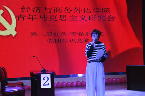 经外记者团讯(记者/摄影 张萧涵 张义军)12月6日晚19时,由经济与商务外语学院青年马克思主义研究会主办的第二届红色·青春系列之党团知识竞赛在体育馆402举行,我院党总支书记胡航老师、分团委书记邹青老师、各专业辅导员、学校及各分团委马研等组织和学生代表参加了此次活动。