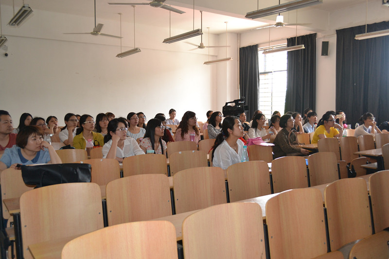 本次讲座以“外语微课讲座”与外语教学示范课“为主题。首先,陈曦老师与大家分享了自己获得“第一届中国外语微课大赛湖北省特等奖”的微课作品,并针对这个作品进行翻转课堂教学示范。微课视频以”Running man,numbers"为话题,教大家练习从一位数到三位数甚至多位数以及数字听写的技巧。让大家从练习中寻找问题并找出解决问题的方法。视频生动形象,陈老师的讲解惟妙惟肖,让在座的老师们听的津津有问,同时让老师们对翻转课堂有了更深的了解。紧接着,黄小蕊老师为大家深入介绍了微课的设计与制作。她强调团队的重要性,并与大家分享了她们在各高校取得的荣誉。鼓励大家积极使用微课 ,加入微课课堂。为了更好地展示出微课的作用,黄老师将微课与课堂录像进行对比,突出了微课短、小、精、悍的特点。随之,在设计与制作方面黄老师提出了自己的独到见解,并介绍了高质量微课课程的5要素与微课课程视频设计创意。最后,黄老师也不忘与大家分享自身的微课制作设计经验并提出了一些深刻有效的建议。