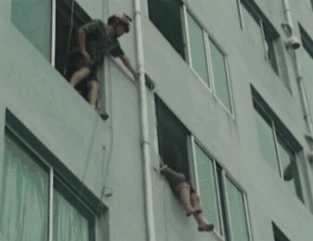 成功接住坠楼男子