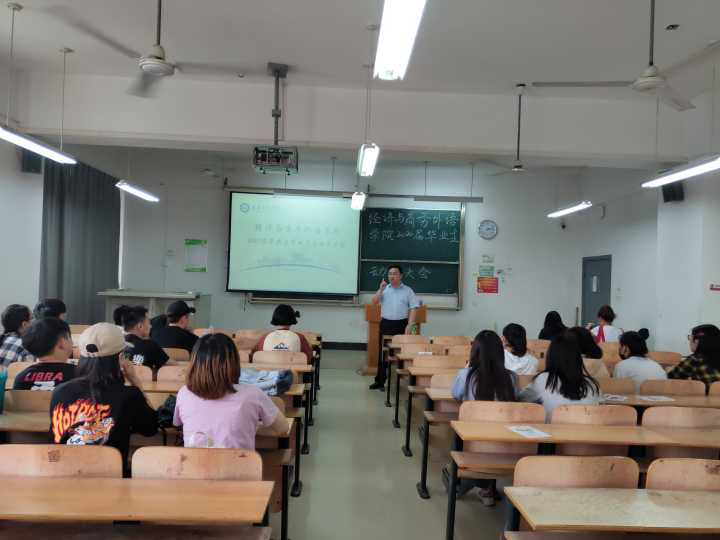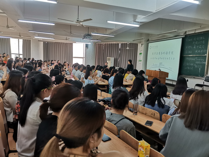 (通讯员:李丹 林子)2019年4月25日,经济与商务外语学院以专业为单位召开了2020届毕业生实习动员大会,文化产业管理专业、国际经济与贸易专业、金融学专业1-3班、金融学专业4-10、12班及英语专业分别在综合楼313、312、311、407和307教室进行动员大会,学院党总支书记胡航、副院长马洁、院长助理徐良培、学院办公室主任黄燕分别代表学院领导前往各个会场进行发言,各系主任、全体实习指导老师、2020届毕业生辅导员及2016级全体学生参加了此次会议。会议由各系系主任主持。