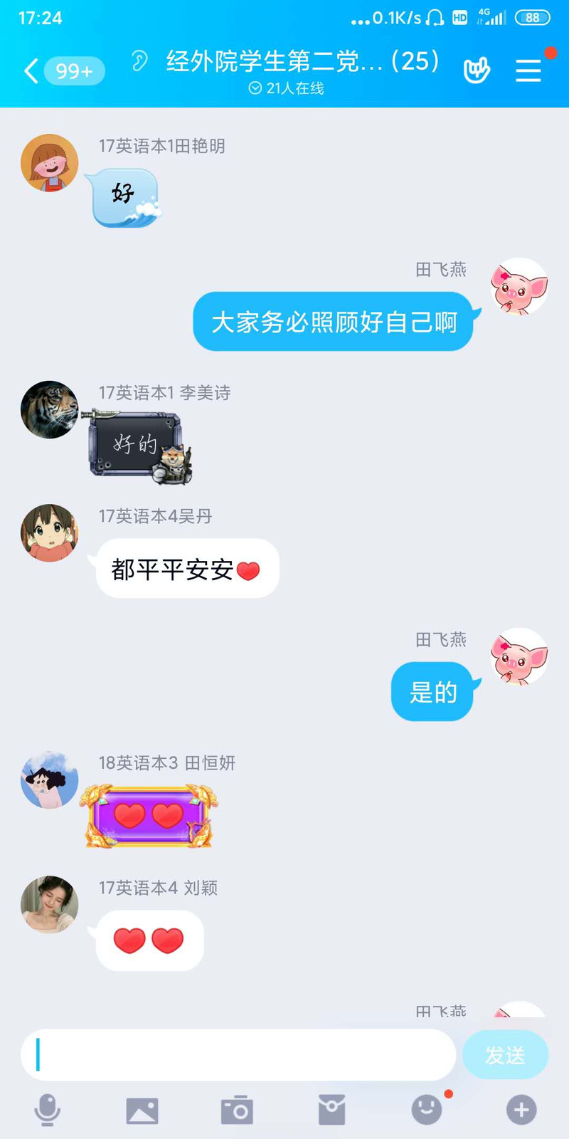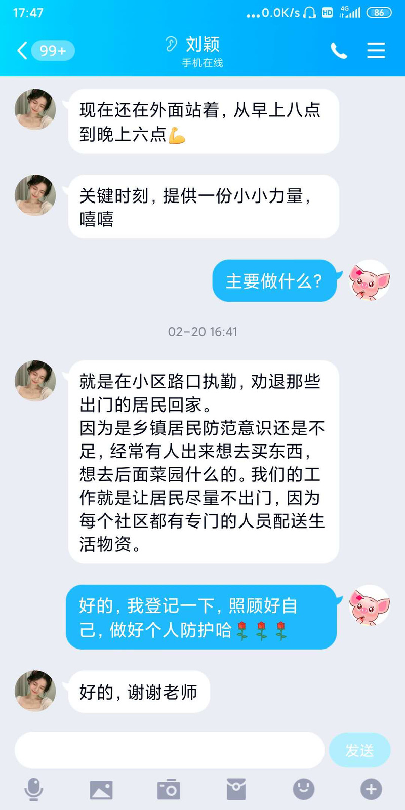 2.通过网络QQ与学生党员科普科学抗疫知识,沟通日常,了解学生党员的情况。