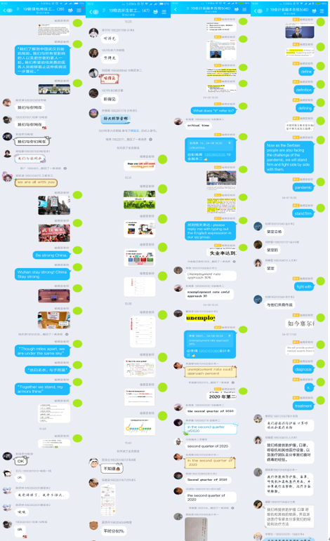 每次上课,我先用QQ群进行语音直播。一般会先拓展时事热点中的buzz words,再导入本课教学内容,将课件中的重要知识点截图放在群里,同时用群语音进行串讲、互动、答疑。每次课,把教学内容拆分成若干个不超过十分钟的细小节点,设计好各节点的串联和使用,在串讲同时用学习通进行“选人”“抢答”等互动。