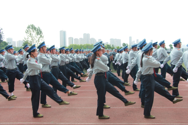 图为军训汇演 摄影:李洋洋