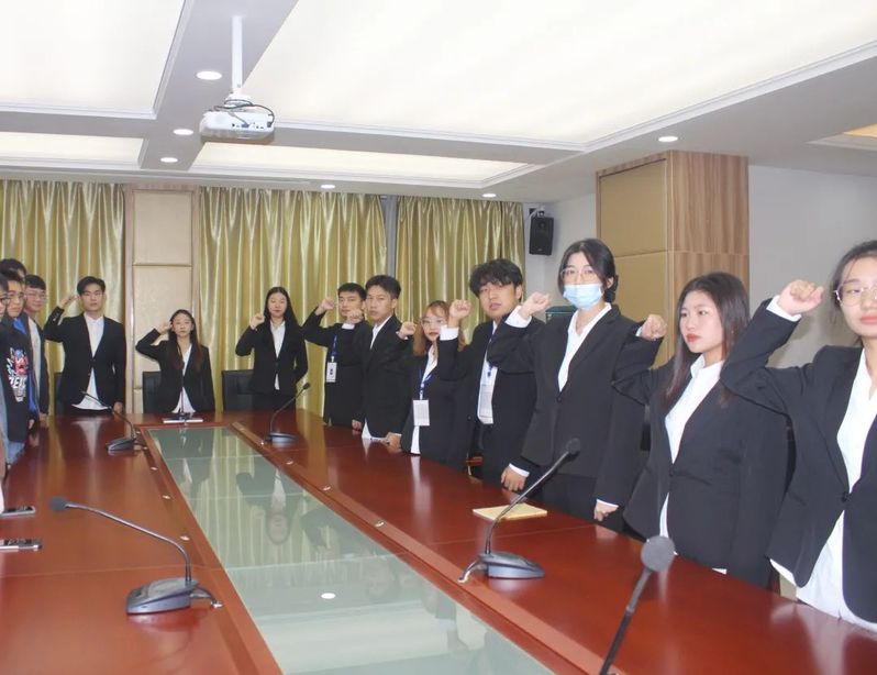 各部门干事发言结束后,秘书处部长苏鹏带领全体学生会成员宣读誓词。