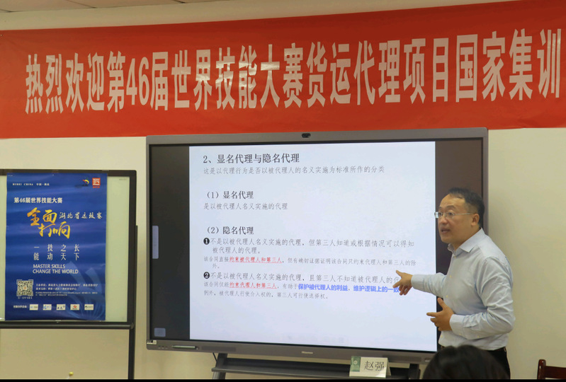 2021年11月3日上午9:00,第46届世界技能大赛货运代理项目国家集训队湖北基地集训进入第三天,由中南财经政法大学赵强教授于必赢优惠y272net综合楼904讲授海上货运代理中的法律问题。