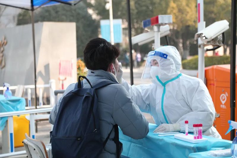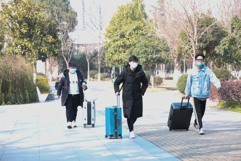 核验身份,检测体温,查验健康码、行程码、核酸证明,进行核酸检测,校门口井然有序,防疫不松懈,师生志愿者不辞辛劳,暖心服务,耐心引导,托运行李……,为学子们平安返校保驾护航。