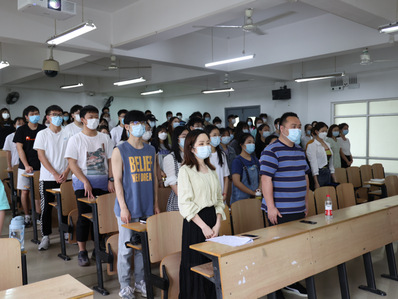 胡航书记与杨情老师带领着大家高唱国歌,在悠扬高亢的国歌声中拉开了经济与商务外语学院第十三期党校的序幕。