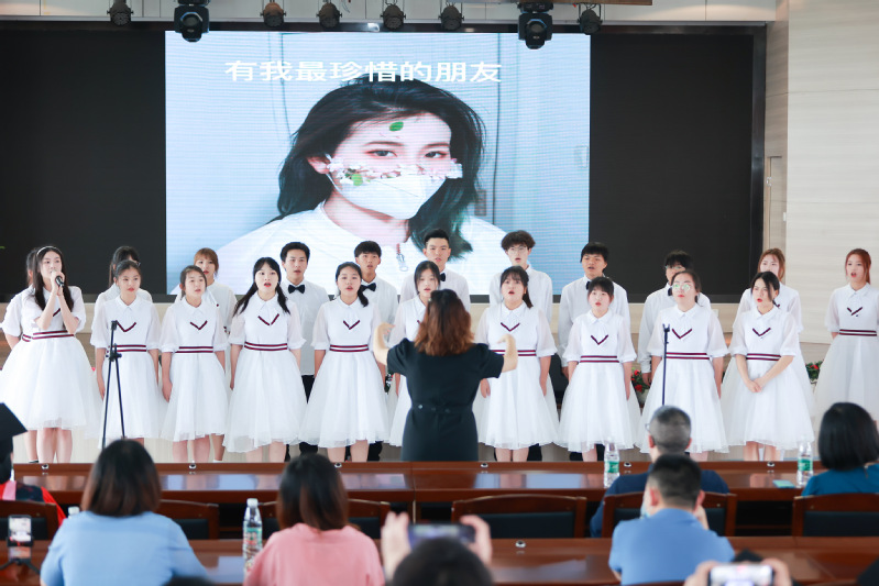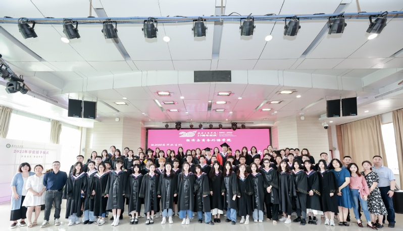 “时光的河,入海流。”伴随同学们的歌声响起,大学时光中的一点一滴浮现,毕业典礼走向尾声。随后,副校长桂裕清和经济与商务外语学院院长张晓骏为毕业学子颁发学位证书并进行合影。经济与商务外语学院2022届毕业典礼完满结束。