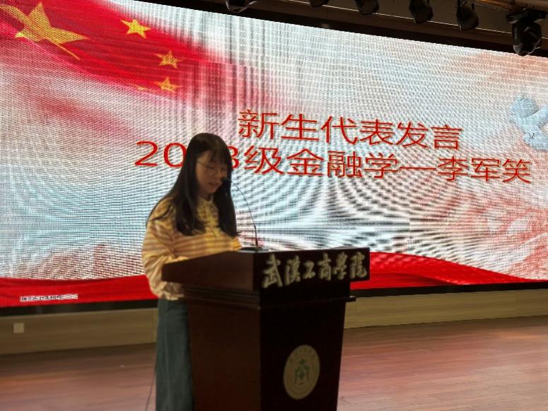 经济与商务外语学院院长张晓骏教授上台发表讲话,分享了我院国际经济与贸易专业学生沈馨燕荣获全国第二届职业技能大赛货运代理赛项(世赛选拔项目)第三名铜牌的喜报,同时对23级新生提出了三个大学能力培养:学习自主性、自我管理和自我探索,并希望新生们能够完成从优秀到卓越的进阶,祝愿同学们自觉承担起学业责任,丰富阅历,提高自身能力。