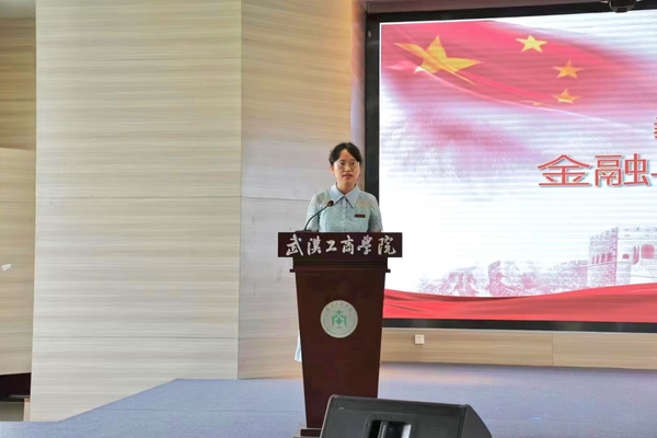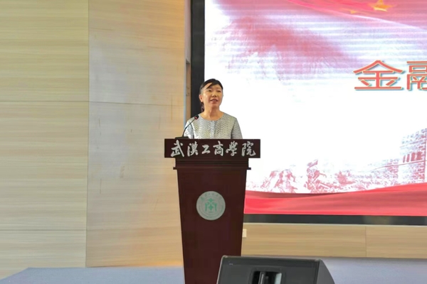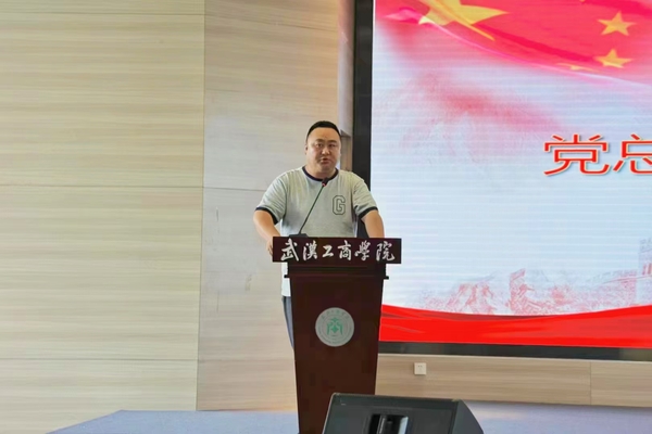 图为经济与商务外语学院党总支书记胡航书记讲话