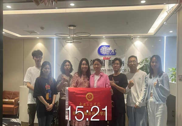 图为学院教师同武汉巡洋国际物流有限公司领导、实习学生合影