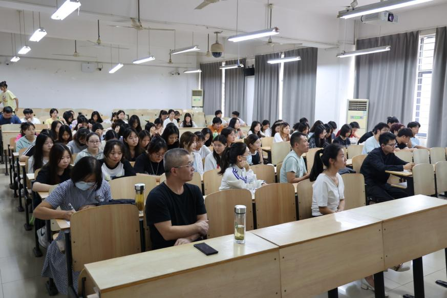 经济与商务外语学院新闻中心讯(记者:田佳慧)2024年9月26日下午三点,经济与商务外语学院专业外语系于综合楼204教室成功举办了一场以“2025研究生招生备考宣讲”为主题的考研讲座。本次活动旨在帮助英语专业学生了解2025年考研的形势,为考研学生提供指导。此次活动特别邀请了江汉大学外国语学院副院长,翻译硕士学位点负责人、MTI教育中心主任牛忠光博士担任主讲人。参与此次活动的人员有经济与商务外语学院副院长马洁、副院长徐良培,教学秘书乔菲,以及经外学院专业外语系全体教师。