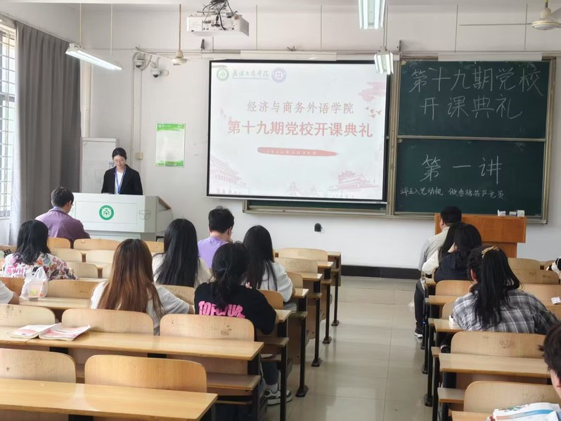 经济与商务外语学院新闻中心讯(记者:许烨 彭伊杨)2025年4月28日中午12:20,经济与商务外语学院第十九期党校开课典礼暨党课第一讲在综合楼203教室举行。学院党总支书记胡航、分团委组织部部分成员及第十九期全体党校学员齐聚一堂,共同开启这场淬炼思想、坚定信念的学习之旅。
