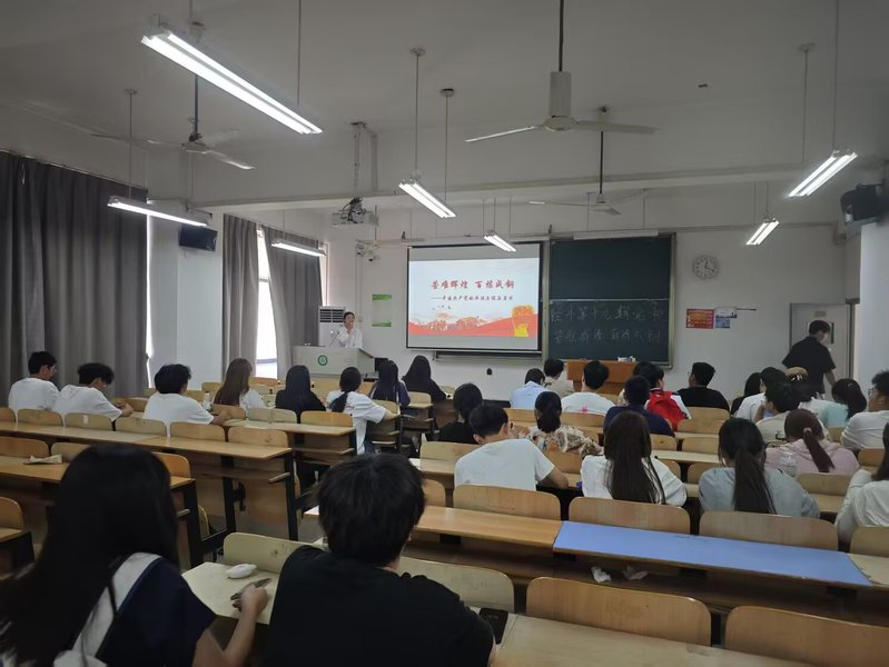 经济与商务外语学院新闻中心讯(记者:李康乐)2025年5月7日中午12:20,经济与商务外语学院第十九期党校第二讲在综合楼203教室举行。本次党课由学院何香香老师主讲,党课主题为“苦艰辉煌,百炼成钢”。