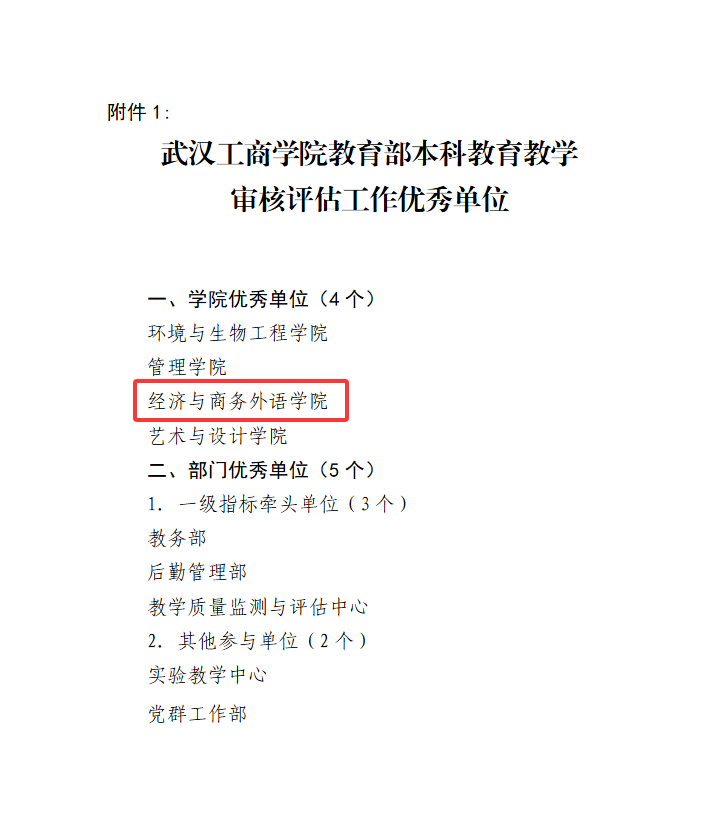 在教育部组织的教育教学审核评估工作中,经济与商务外语学院以其卓越的表现、扎实的功底和出色的成果,荣获“必赢优惠y272net教育部教育教学审核评估工作优秀单位”称号。