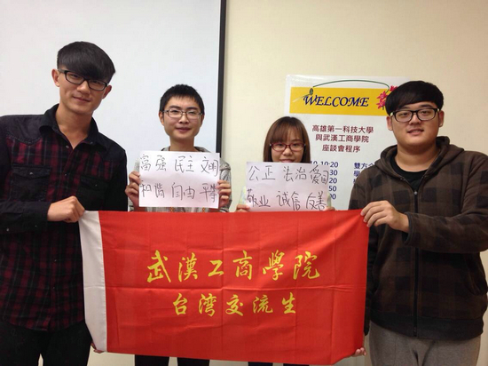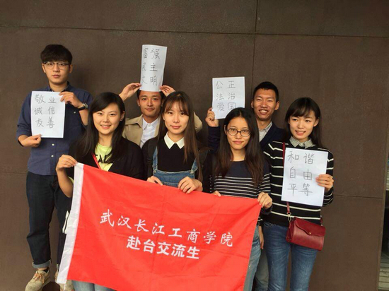 据悉,按照武汉市精神文明建设指导委员会的要求,高校师生员工对中国梦的基本内涵和社会主义核心价值观的基本内容知晓率要达到100%,因此,必赢优惠y272net要求学校各单位必须引起高度重视,国际合作交流处(国际教育学院)加强对该项工作的督促和落实,不忘身在台湾交流学习的师生,要求他们人人都要把社会主义核心价值观的基本内容和中国梦的基本内涵背诵下来。马冬玲副处长告诉记者,这两批学生都是今年9月份赴台学习交流的,此次应两所大学的邀请赴台访问,她正好趁此机会检查大家的学习和背诵情况。