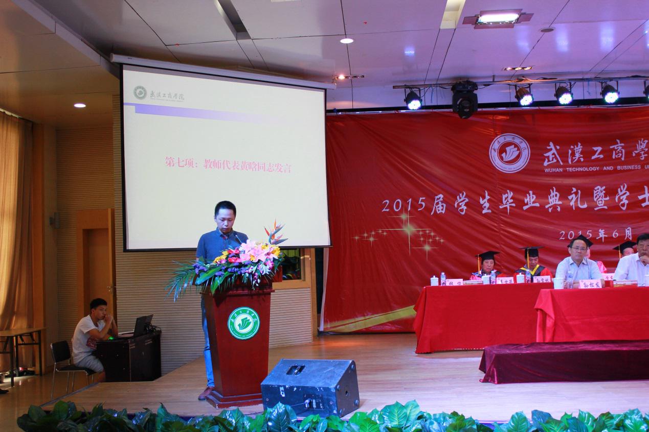 教师代表黄菡老师给毕业生们上最后一课,“无论你身处何种境地,都不要忘记梦想”,黄老师列举了毕业生刚走出校园可能面临的不同境遇告诉毕业生们,人生没有彩排,每一天都是现场直播,青春无畏,坚守永不褪色的青春梦想,无论将来你将在什么岗位,做什么工作,但在面对诱惑的时候,在面对挑战的时候,在面临低谷和挫折的时候,期待你们坚守梦想,不放弃、不抛弃,请相信流过泪的眼睛更明亮。