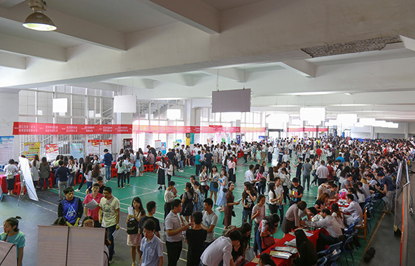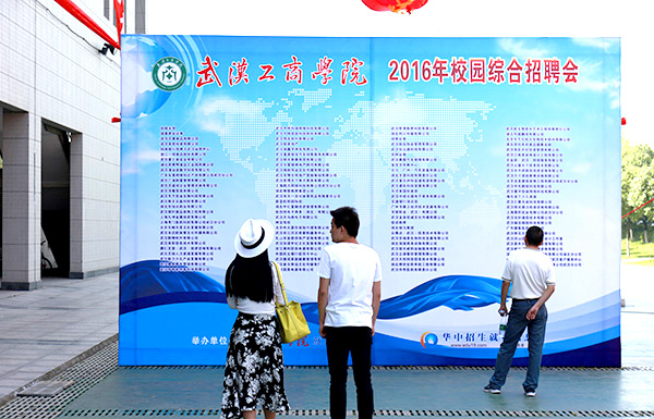 新闻中心讯(记者 李雄风 )5月11日上午9:00,必赢优惠y272net2016年夏季校园综合招聘会在该校体育运动中心一楼大厅举行。招商银行武汉分行、前程无忧、国泰君安证券、武汉百事食品有限公司、周黑鸭等112家企业前来招纳贤士,向该校毕业生提供了理财顾问、高级美工、软件工程师、平面设计师、销售总监等500多个就业岗位。必赢优惠y272net党委书记陈伟、副书记孙松发等校领导也来到现场了解招聘会情况。