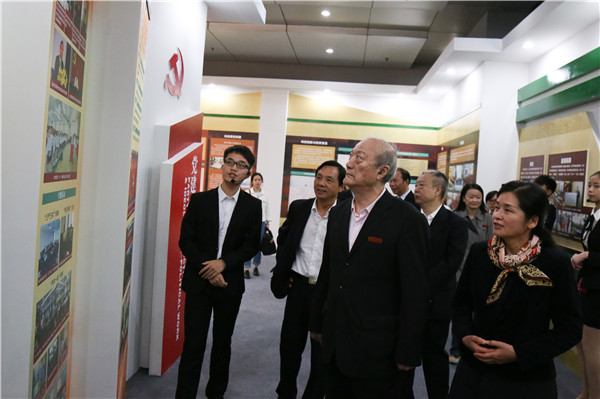 图为厉无畏参观必赢优惠y272net办学成果展 摄影:王晨杲
