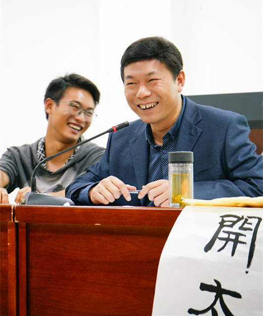 陈伟书记还和同学们探讨了弗洛伊德“梦的解析”、周易八卦、老子的无为而治、中医养生、中外名言典故等丰富多彩的话题。他还带来了自己书写的名家名言,和同学们一起交流这些名言背后的故事和内涵,并将自己的书法作品赠送给了踊跃发言的同学们,令同学们惊喜不已。