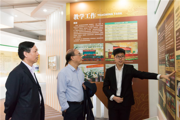 报告会开始之前,刘经南院士在董事长彭秀春、校长张安富、党委书记陈伟的陪同下参观了学校校史馆、图书馆,以及学校水处理示范基地——静思湖,查看生态治理后水质情况。彭秀春董事长向刘经南院士介绍,该校环生学院与湖北君集水处理公司开展校企合作,共同研发污水处理技术,对受洪水污染的静思湖进行综合治理和修复,水质得到了明显改善。