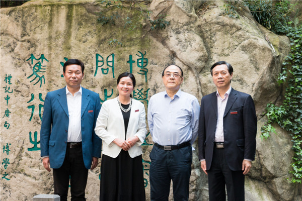 为董事长彭秀春(左二)、校长张安富(右一)、党委书记陈伟(左一)与刘经南院士(右二)合影 摄影:张功源