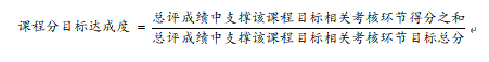 课程分目标达成度,为总评成绩中支撑该课程分目标相关考核环节得分之和与对应的目标总分的比值,其计算公式为: