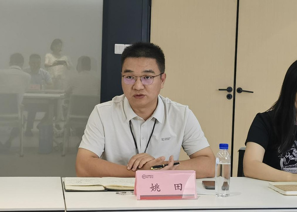 图为湖北顺丰速运有限公司人力资源负责人姚田介绍学生实习安排情况