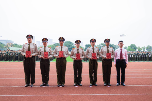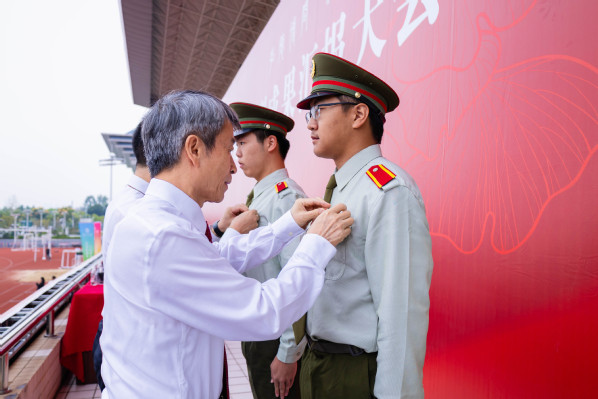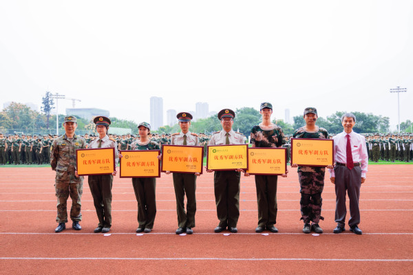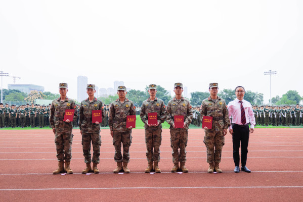 汇演结束后,学生工作部部长陈义文宣读《关于表彰2025级优秀军训方队、优秀军训学员的决定》文件,与会部队领导、学校领导分别为获奖代表颁奖。