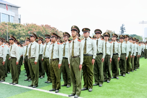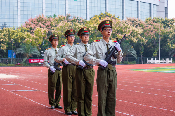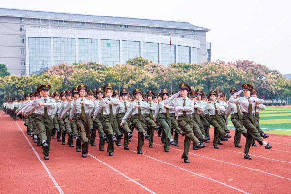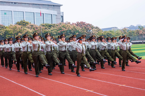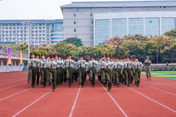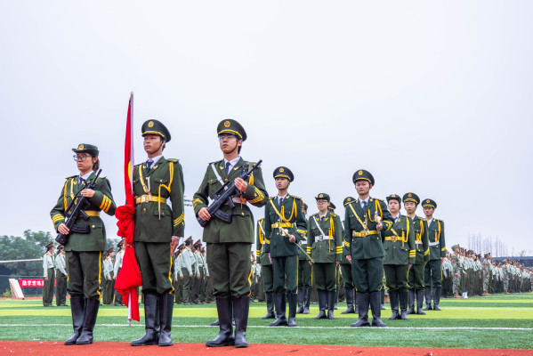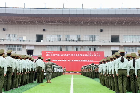 伴随着激昂的《分列式进行曲》,护旗方队率先入场,17个新生方阵依次亮相。他们迈着铿锵正步走过主席台前,用挺拔的身姿、昂扬的状态,诠释了武工商学子积极进取、朝气蓬勃的青春风采。