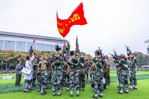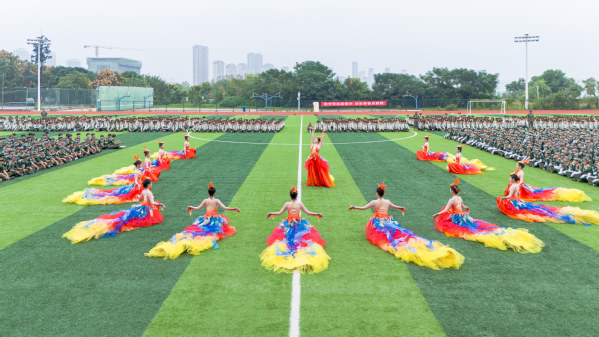 由1500余名新生组成的花样方阵成为全场焦点,他们依次变换出“1919”“五四运动”“1921”“红船会议”“1949”“天安门”“中国我爱你”等造型,致敬祖国,现场十分壮观。队员们齐声高呼“听党指挥,能打胜仗!”“祖国万岁!”“正义必胜,和平必胜,人民必胜!”等铿锵誓言,将对历史的致敬、对祖国的热爱与对和平的捍卫融为一体,深情回溯了党的百年光辉征程,并以此特别方式致敬抗战胜利80周年。