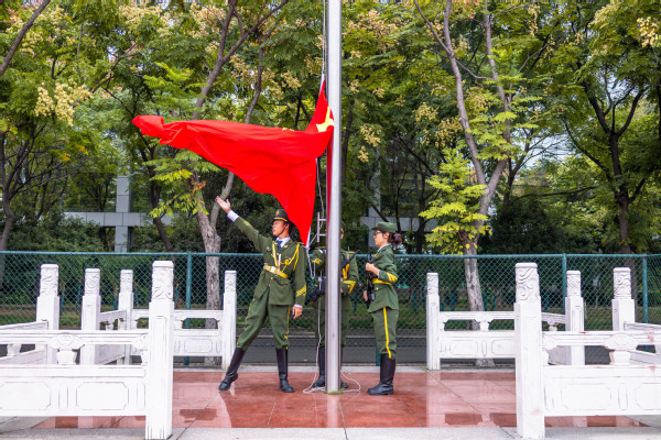图为升国旗 摄影:余剑韬