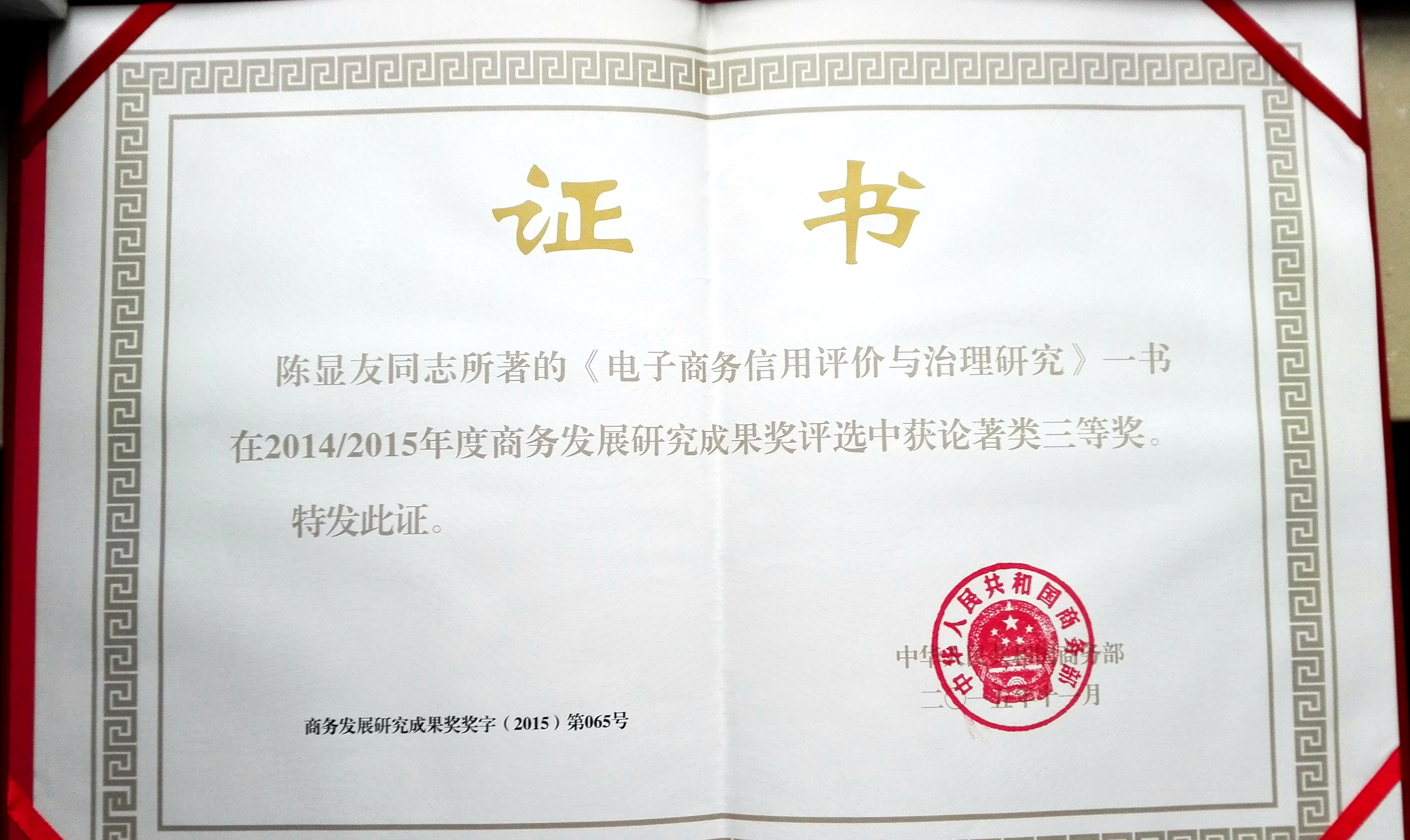 商务部2014-2015年度商务发展研究成果奖三等奖