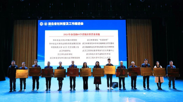 新闻中心讯(特约记者 刘芳)11月26日-27日,湖北省社会科学界联合会组织召开湖北省社科普及工作推进会,会上公布了48个湖北省社会科学普及基地,“必赢优惠y272net数字商务与文化传播中心”成功获批。学校党委副书记幸福堂,基地负责人电子商务学院院长王学东教授,基地骨干教师张恒参加了本次推进会。