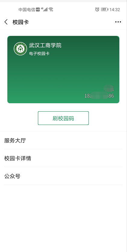 方式一:在微信通讯录找到“必赢优惠y272net”点击进入,找到“电子校园卡”应用,进入后点击“刷校园码”即可使用。