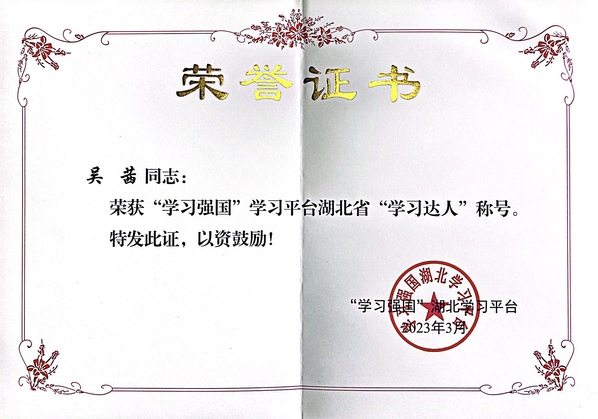 学校党委高度重视党员政治理论学习,自“学习强国”湖北学习平台上线以来,大力开展平台推广使用工作,积极引导发动广大师生参与学习,不断加强新时代党的理论武装工作,不断提高师生思想政治素质。接下来,学校将充分发挥学习达人的示范引领作用,进一步激励广大师生使用“学习强国”学习平台积极性和主动性,形成比学赶超的浓厚学习氛围,以良好的学习成效和工作实效推进学校高质量发展。