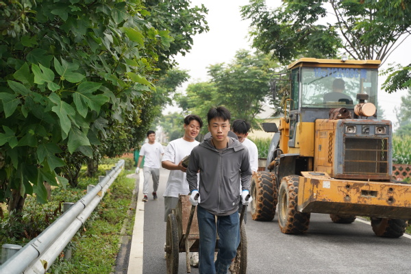 看着改造完工的庭院,华严农场景湾社区主任黄俊连声称赞,“连日来,学校师生不辞辛劳改造村民庭院,让我很既感动又吃惊。尤其是施工期间,同学们顶着烈日挨家挨户沟通收集老物件、搬砖、卸货……从早忙到晚,没有任何怨言,他们良好的专业素养、认真做事的态度和吃苦耐劳的品质非常可贵。”