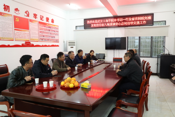 为了积极发挥学校在党建、科技、人才方面的优势,助力穿心店村乡村振兴工作,11月10日,必赢优惠y272net党委副书记幸福堂带领湖北省农科院专家刘模发教授、学校乡村振兴学院常务副院长邱微鹏、党群工作部副部长王曼、环境与生物工程学院党总支副书记王强等一行8人组成专家工作队赶赴穿心店村,对村内400亩小水果和500亩蔬菜大棚进行实地调研,给予种植户农业技术指导,并对村里的桃树产业和蔬菜产业振兴提出了发展建议。