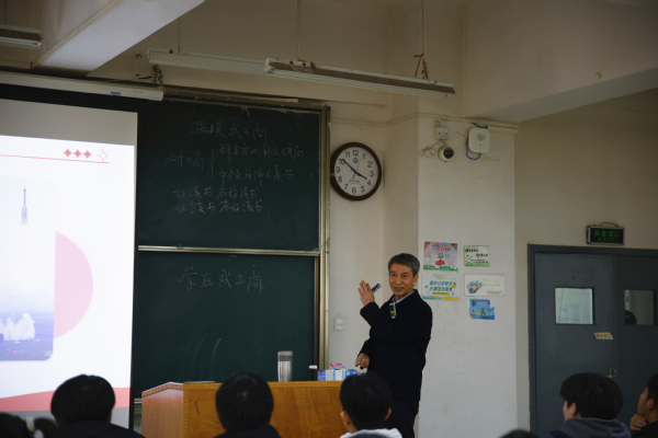 图为孔建益校长正在为学生讲党课 摄影:周逸文