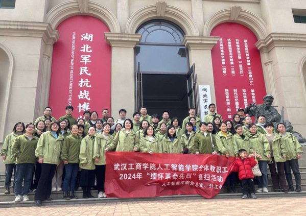 (通讯员 吴艳张静)为深入学习贯彻习近平新时代中国特色社会主义思想,深刻领悟中国共产党人精神谱系的丰富内涵和时代意义,传承红色基因,缅怀革命先烈,弘扬民族精神,由人工智能学院党总支、分工会联合组织学院全体教职工于4月3日下午前往武汉市石门峰纪念公园参观湖北军民抗战博物馆,并开展祭扫活动,向革命烈士献花祭奠,表达缅怀之情。