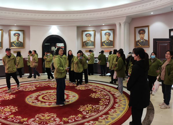 学院全体教职工在讲解员的带领下,进入湖北军民抗战博物馆依次参观了党建馆、军民抗战文物展等系列展馆,直观感受革命先烈们从新民主主义革命时期到抗日战争时期,再到解放战争时期以及抗美援朝战争时期的艰苦斗争深刻体悟中国军民抗战的历史。