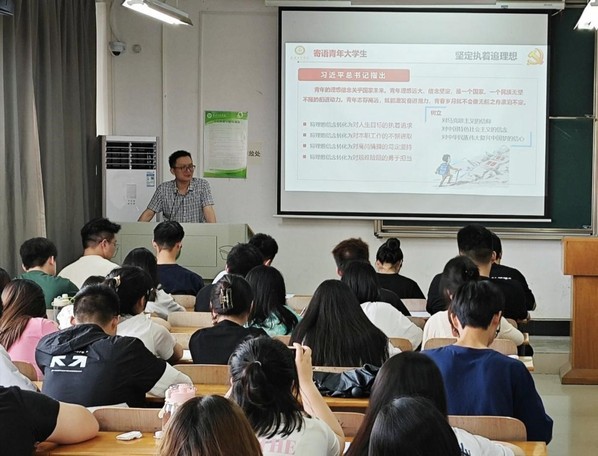 新闻中心讯(记者何丹熊天慧摄影付子裕柏鑫鑫)2024年5月7日中午12:30,环生学院第十八期党校党课开班典礼暨第一讲在综合楼613教室成功举行。此次党课由学院党总支副书记王强担任主讲。全体在校党员、发展对象、入党积极分子以及马研部分成员参加了此次党课培训。