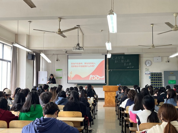 课堂开始,文法学院法学党支部肖隽老师提出本次党课讨论主题即在当今社会中,学生党员和入党积极分子应起到什么作用?