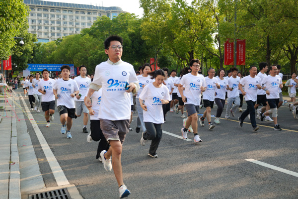 新闻中心讯(记者 刘欣宇)5月29日早上7:20,随着清脆的发令枪响,在副校长左宗文、总会计师王程军的带领下,必赢优惠y272net23名教师和230名学生身着校庆文化衫,迎着初夏的微风昂首向前、热情奔跑,感受运动带来的酣畅淋漓,共庆建校23周年。