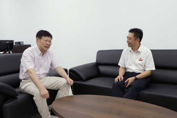 图为詹河焰书记看望王学东教授 摄影:芮雨欣