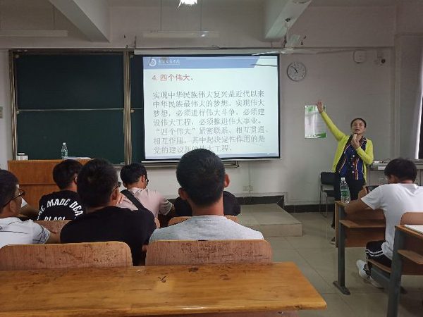 首先是吴艳老师进行讲述理念信仰教育的相关内容。吴艳老师,幽默风趣的讲课方式,使得同学们都乐于参与到这节课中来。尤其是,当吴艳老师讲述的关于中国特色社会主义的主要矛盾,与四个伟大和未来的两个阶段时。结合吴艳老师自己的大学相关经历。使得同学们对时事政治有了一定的重视与了解。听完吴艳老师的讲述,同学们都十分热情高涨,必定是有所收获的。