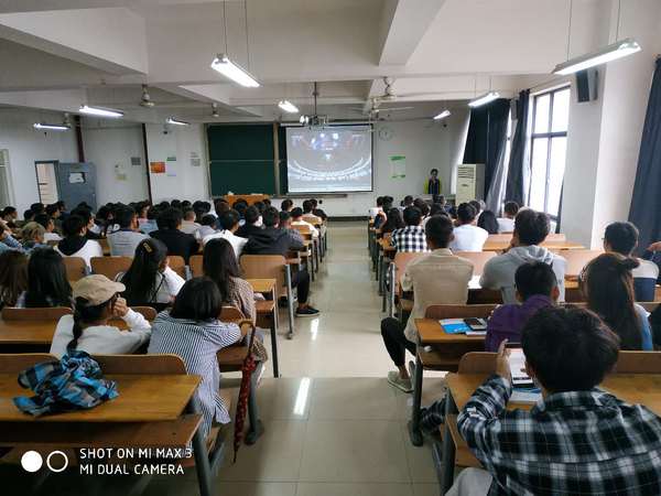 图为学生在认真听讲座
