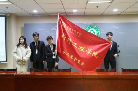 首先全体学生会到场,秘书处进行点名,主持人介绍会议嘉宾。接下来由副主席吴昙致开幕词,宣布软件工程学生会正式成立。主席钟妍对最近的工作作出总结,发表自己对近举办的运动会和新生杯两个重大活动的看法,分团委书记刘笑夏老师致辞和进行授旗,然后学生会的各个部们按照秘书处、分团委组织部、分团委宣传部、宣传部、外联部、勤工部、学习部、生活部、女生部、文艺部、权益保障部和体育部的顺序依次发言,部长对自己做简单的自我介绍,对近期的工作作出总结和对部门工作的看法以及对工作的要求,每个干事对自己做了简单的自我介绍以及对工作的认识和展望,虽然介绍的过程中难免有些许紧张,但其中也有许多的同学以幽默风趣的方式进行介绍。介绍完毕后由副书记易扬对本次会议做出简单的总结和致闭幕词,最后全体学生会成员拍照留念。