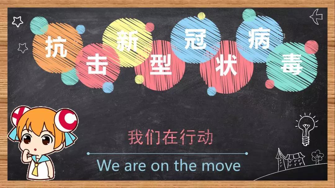 “抗击新型冠状病毒,我们在行动。我制作的PPT的亮点是结合了较多的二次元元素和较为突出的特效以展现出我PPT的风格。