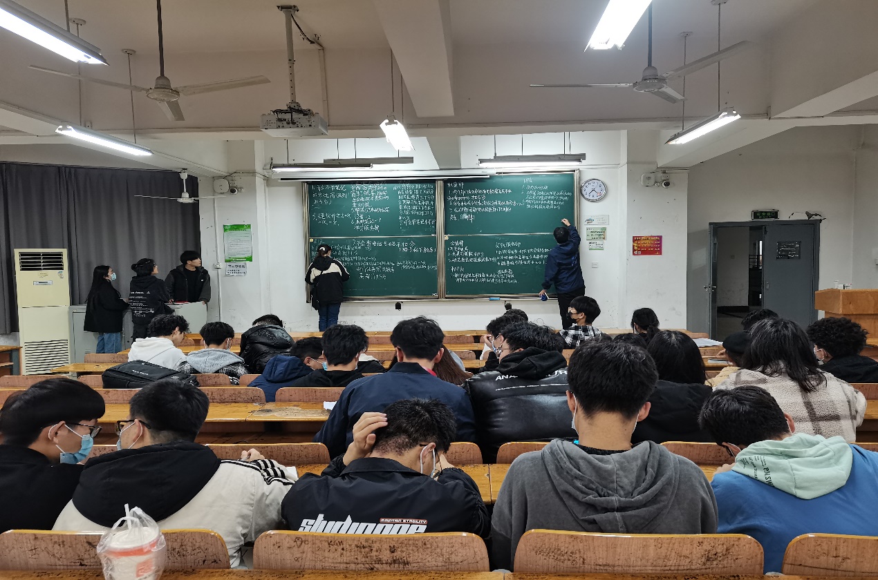 学生会成员在黑板上对原制度发表看法(摄 晏玉娟)